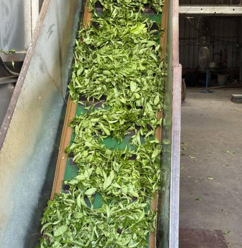 “食代宁聚力”实践队员在福安市棠溪村茶厂茶叶运输带