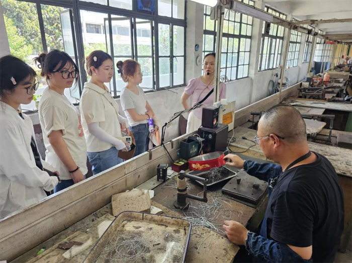 谈及铁画现状,张老师坦言困境:“最急迫的是后继乏人。”许多老匠人年事已高,而年轻人难以沉心学习这门需数十年锤炼的手艺。随即他便说道:“只要有人愿学,我们绝对倾囊相授。非遗传承的本质,不就是为人民留住美的技艺吗?”这句质朴的总结让队员们深受触动,现场响起热烈掌声。