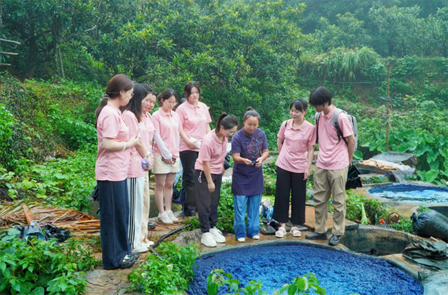 围绕“非遗活化+电商赋能+文旅升级”,实践队发挥自己的创意与当地产业负责人进行商讨方案的可转化率。实践队规划设计青黛扎染产品,为枇杷打造特色包装;构思“非遗+生态”“红色+古村”主题文旅线路,设计有趣的路线;探讨青黛扎染产品如何搭建“线上+线下”推广。同步开展调研,聚焦农产销售、非遗传承、文旅开发,力求形成“农产+非遗+文旅”融合发展调研报告,以青春智慧为书峰乡乡村振兴破局。