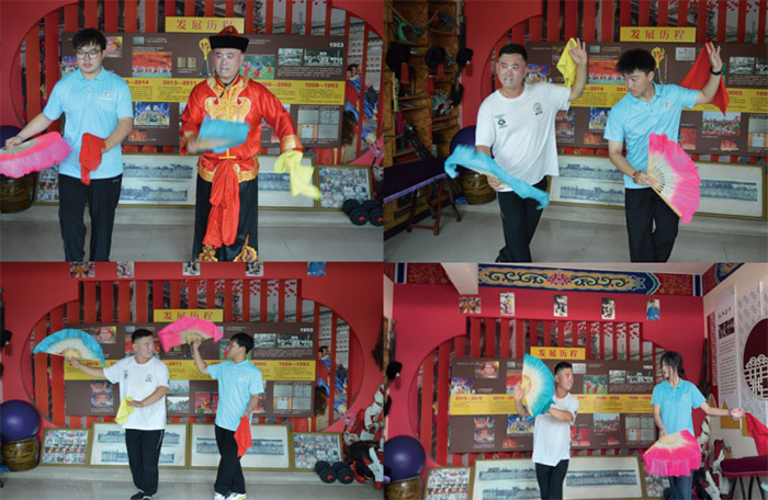 随后,实践队成员也加入到地秧歌表演之中。董老师首先向小分队传授了地秧歌的基本步伐,成员们开始学习“平步”与“踏步”;然后是教授扇子的使用技巧,他强调:“用扇如用笔,心中所想,手中所现。要用心去感受它,引导它。”在老师的耐心指导下,成员们逐渐掌握了扇子的握法,并开始缓慢地学习地秧歌的基本动作。