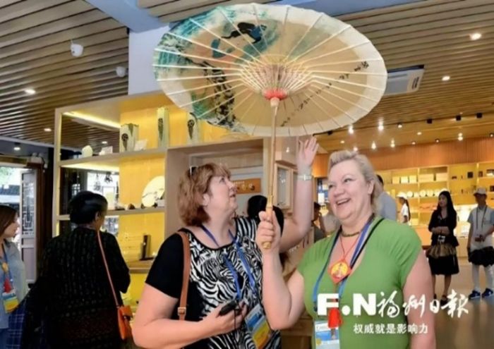 图5 外国人体验油纸伞(源自福州日报)