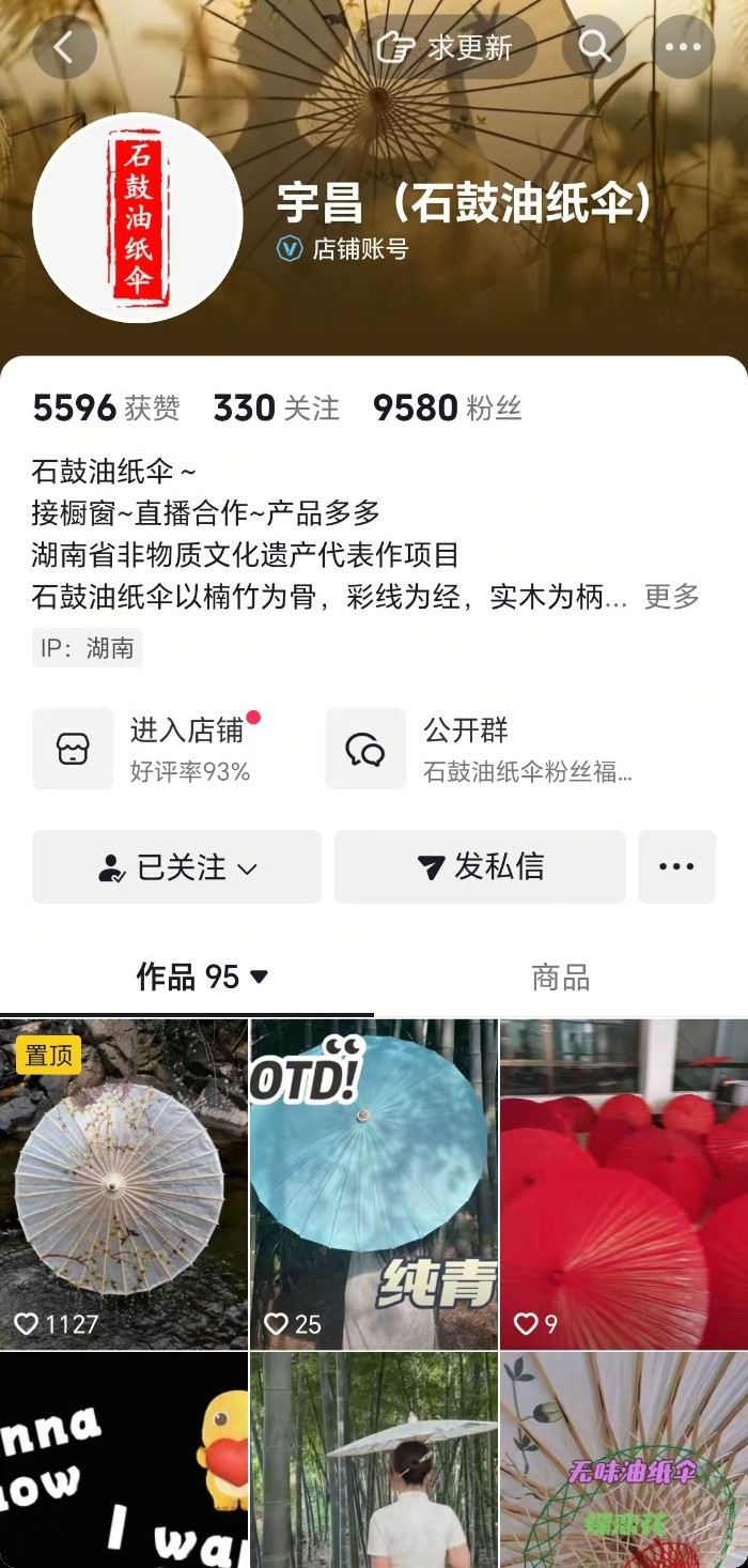 图11 湘潭宇昌工艺伞业股份有限公司的抖音账号