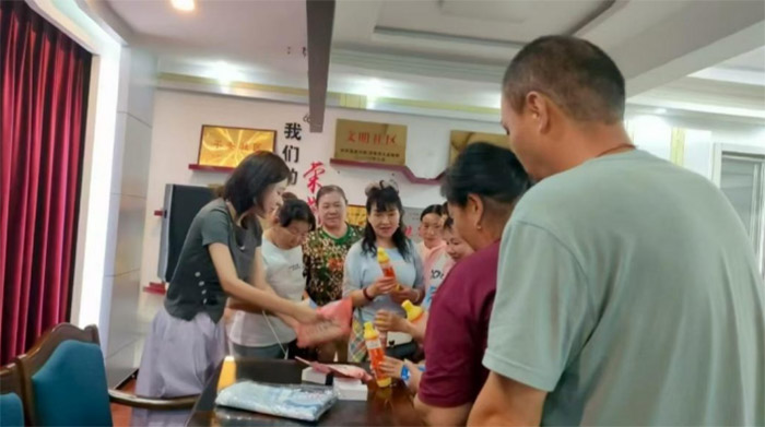 (青心筑梦宣讲团队员徐景诗为积极参与活动的居民赠送奖品)