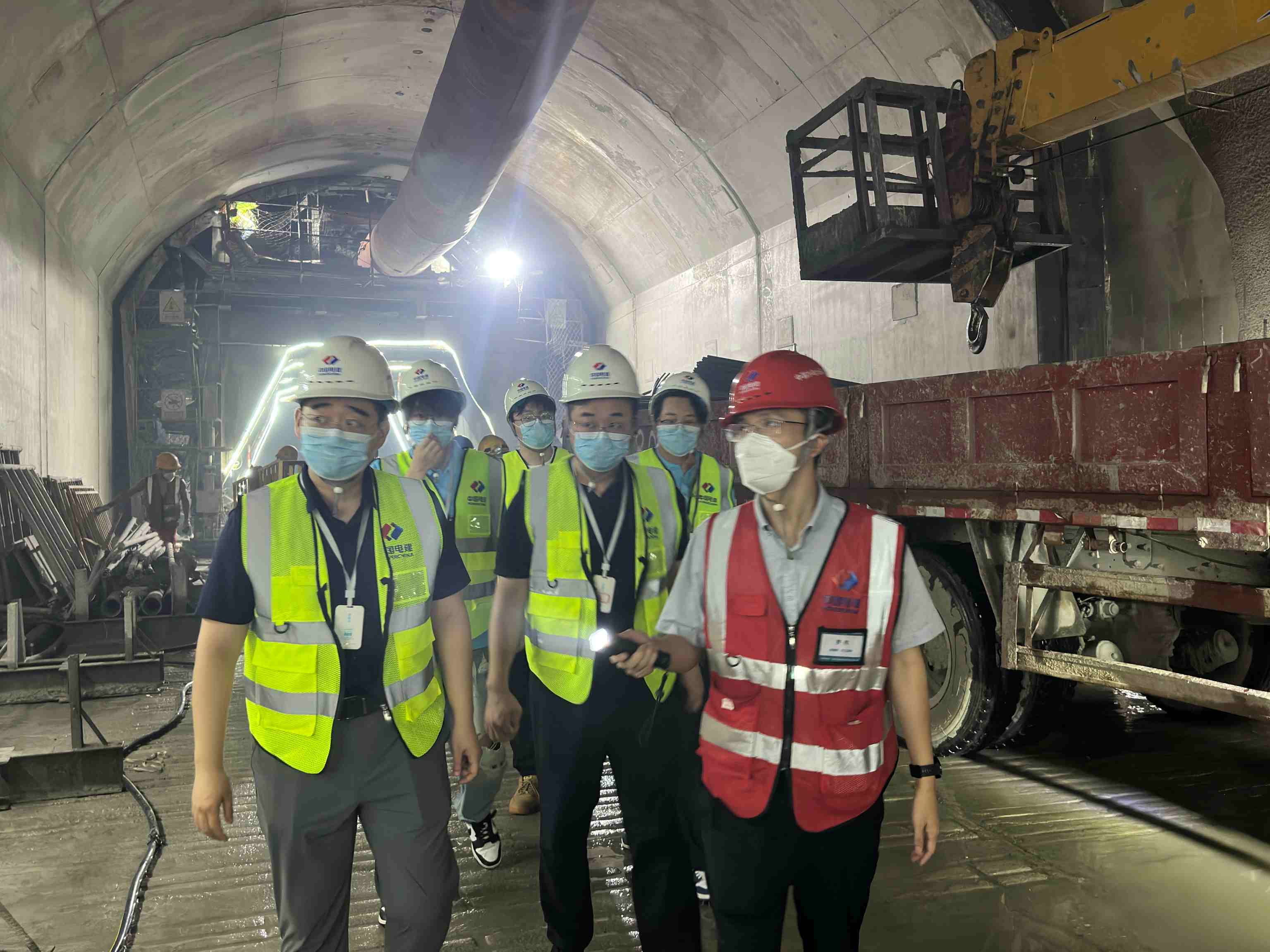 在项目技术负责人的带领下,团队成员头戴安全帽、身穿反光背心,深入地下隧洞内部实地考察,切身感受“千米岩腹筑水脉”的工程壮景。沿着隧洞前行,耳边是机械轰鸣与交叉作业的井然节奏,眼前则是巨大的拱形开挖面与高效运转的智能监测设备。