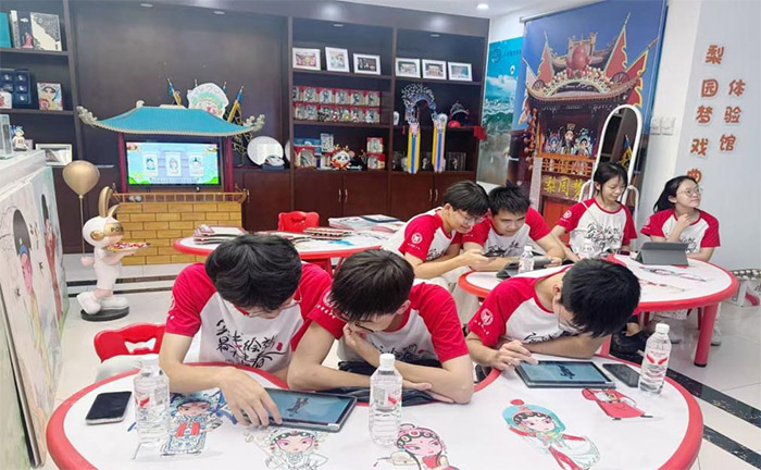 步入“梨园梦”公司,迎面而来的场景与预想中遍地戏箱,戏服熙熙攘攘截然不同。现代化教室映入眼帘,流光溢彩的电子屏幕上传统戏曲演员水袖飞舞,顾盼生辉。指尖凝结成梨园梦精心构建的缩影——一座以科技为桨,奋楫未来的美育港湾。
