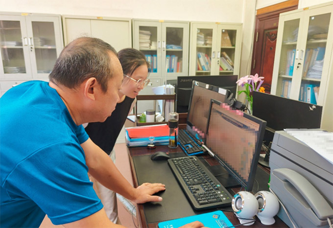 图为湖北省利川市应急管理局工作人员向团队成员介绍应急指挥系统近期信息