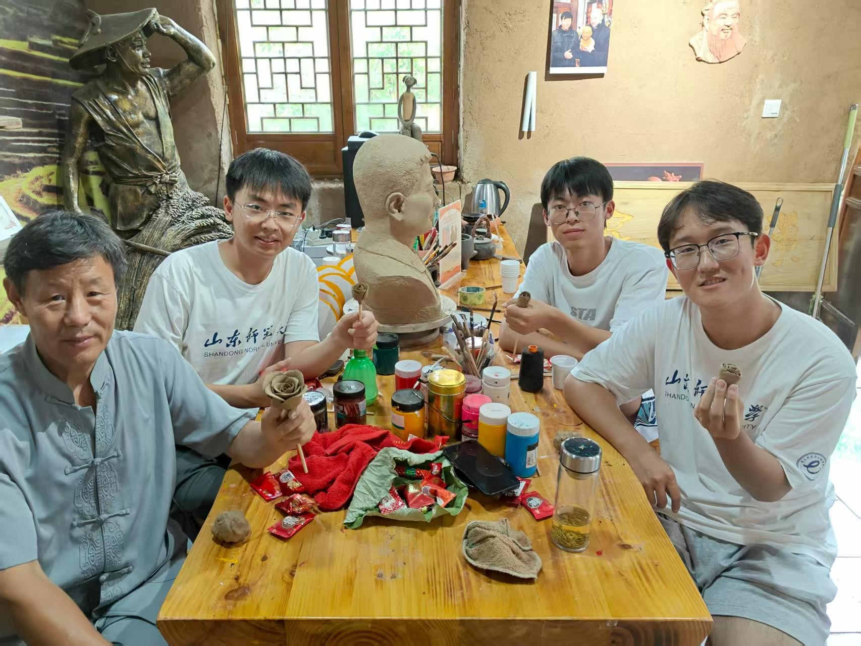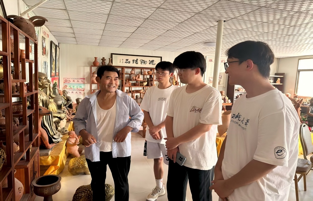 7月16日,实践团走进省级非遗枣庄泥塑传承地,拜访第六代传承人刘进潮。他完整展示从选泥、塑形到烧制、上色的工艺流程,感慨 “枣庄泥塑是老祖宗传下的宝贝,再苦再难也要传承下去” 。实践团近距离观察、交流,深刻理解枣庄泥塑传承脉络,更体会到非遗传承需在坚守匠人精神的基础上,思考创新发展,让古老泥塑 “讲好新时代故事” 。