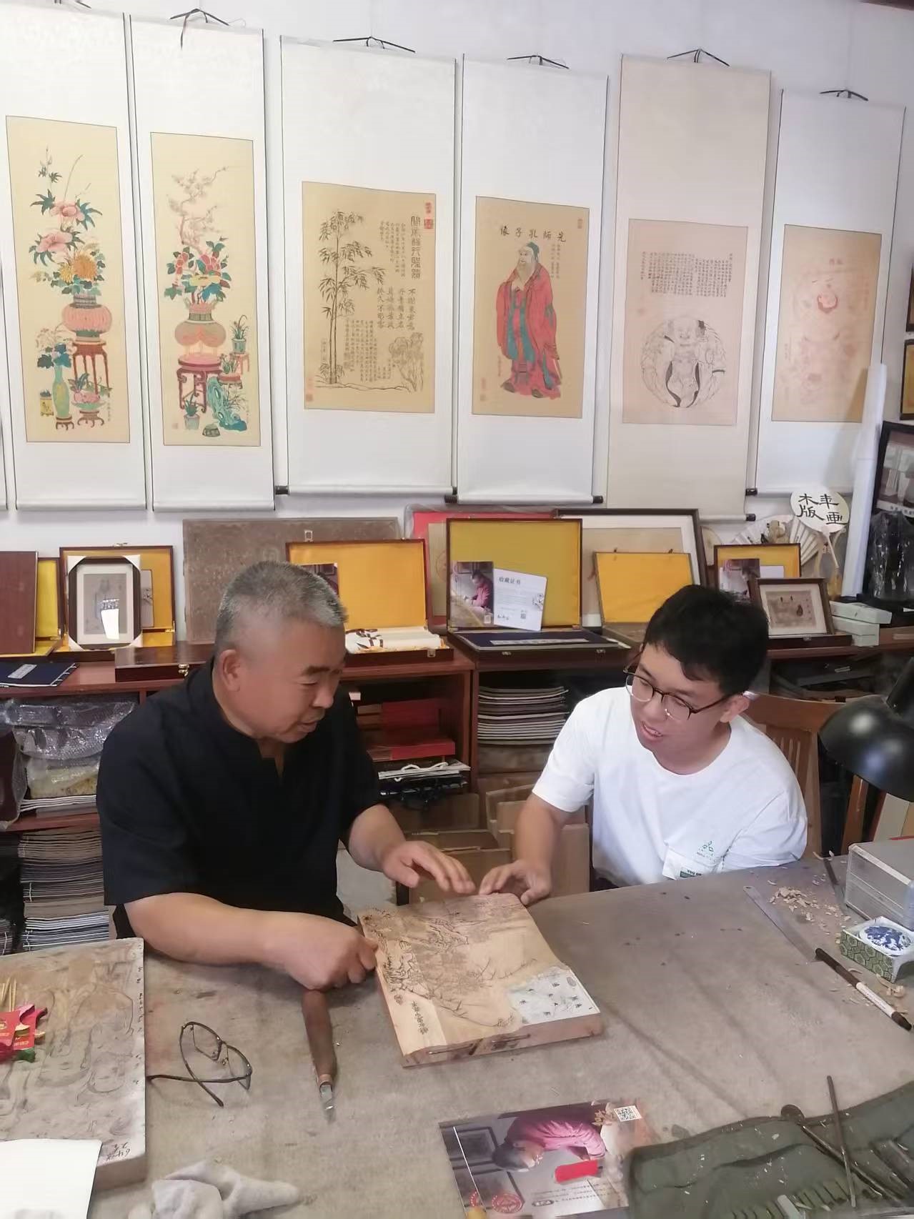 在杨家埠村年画店 “和兴永”,实践团见到杨家埠木版年画省级非遗代表性传承人杨乃东。他介绍木版年画制作讲究,选用梨木保证质地坚硬细腻,让线条刻画精准流畅、保存长久。交流中得知,如今众多大公司慕名而来,定制木版年画开发文创产品、融入品牌设计,老手艺迎来新机遇。杨乃东欣慰的话语,让成员看到老技艺 “走出深巷、走进生活” 的希望,明白非遗传承可借助现代文创、品牌合作,焕发全新活力 。