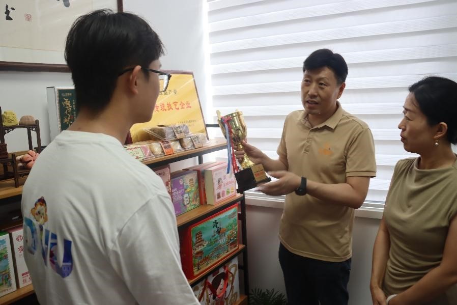 实践中,团队在济南解码烙画、糕点、剪纸、葫芦雕刻的传承新径,在枣庄触摸泥塑、非遗馆的守艺坚守,在潍坊探寻风筝、年画的创新突围,更借学子宣讲队,于多地红色场馆、社区讲台,串联党史与非遗传承脉络,让红色基因赋能非遗发展,让非遗故事厚植家国情怀。