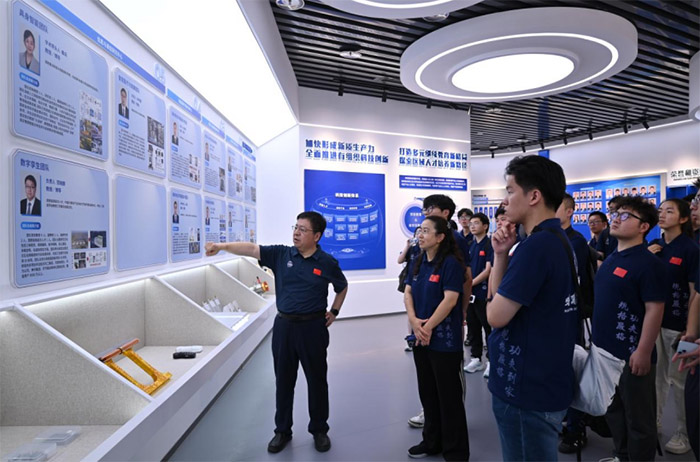 公司董事长吴杰校友带领实践队参观企业展厅。王锦泽供图