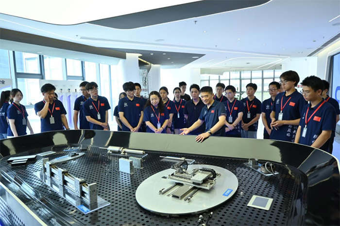 在科瑞工业自动化系统(苏州)有限公司,公司董事长吴杰校友带领实践队参观了企业展厅、研发中心与生产车间,介绍传感与控制技术及产品。实地观摩中,队员们对工业自动化的前沿水平有了更直观的认识。在苏州矽微电子科技有限公司,副总经理贾淳校友陪同队员们参观现代化生产车间,并详细剖析半导体封测行业的发展前景,让队员们对相关领域有了更深入的了解。在苏州进阶教育,为了让更多云端学生受益,队员们开启现场直播。孙云杰校友及优秀教师代表带领实践队参观现代化教育设备并进行交流座谈,队员们收获了个人成长的宝贵经验。