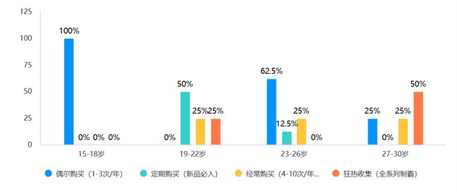 调研数据显示,这一群体对Labubu的追捧,本质上是对身份认同、情感陪伴与亚文化归属的集体诉求表达。符号消费成为圈层认同的核心密码。调研中,Labubu被Z世代赋予“潮流时尚”“个人品味”“亚文化标志”等多重意义,41.18%的消费者认为其是“社交话题的参与凭证”,28.57%将其视为“圈层身份的显性标识”。这种符号属性在购买行为中尤为明显:19-26岁群体中,定期购买新品与经常购买的比例合计超50%,他们通过收藏行为完成“我属于某一群体”的身份宣告,形成紧密的圈层联结。