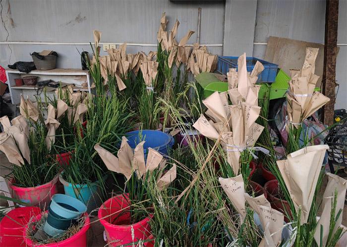 活动最后,两支部成员共同前往田间地头,实地体验以“华墨香”材料为亲本之一的杂交操作。大家拿起剪刀、手持镊子,亲身参与水稻去雄、套袋隔离等关键步骤。在此过程中,成员们深刻体会到农业科研“差之毫厘,谬以千里”的严谨性,也对全谷物产业“从实验室到田间”的源头培育过程有了更直观的认知。