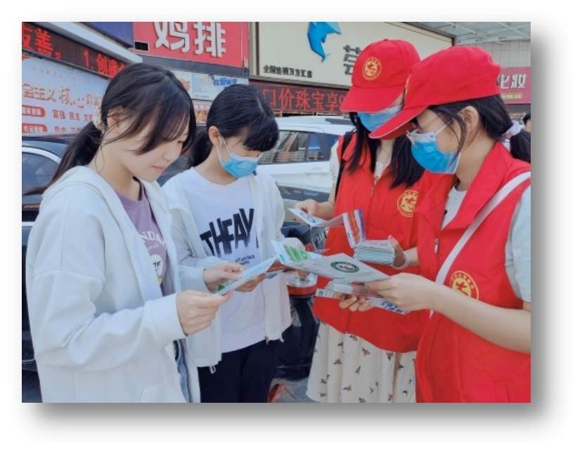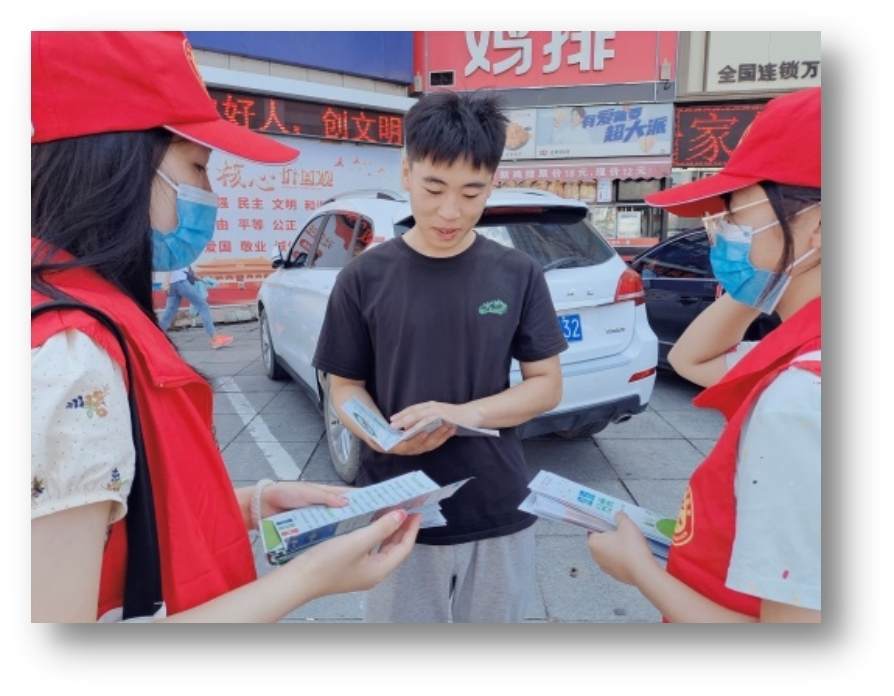 第三站,为营造县城内良好的垃圾分类氛围,将垃圾分类真正根植在每个人的心中,实践团队成员们穿梭在超市、商场、小巷,向路人们分发宣传手册,普及垃圾分类的相关知识。行人们积极参与活动,同学们的宣传得到热烈反响。