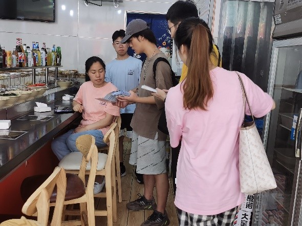 第三天,实践团来到了江苏省常州市新北区的兰翔社区,对社区内的居民以及社区周边的商户开展了低碳宣传活动。活动内容主要包括通过随机拦截的方式向社区内居民以及商户发放宣传手册,还通过与居民的交谈了解他们关于“双碳目标”等国家生态建设方针政策的了解程度,并对于居民缺乏了解的部分进行针对性讲解。成员们通过调研发现,大部分居民有低碳生活意识,部分从事餐饮类等服务型行业的商家环境也能在生产经营过程中采取一些合理有效的措施,从而有效保护环境。成员们用实际行动投身国家生态文明建设。