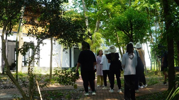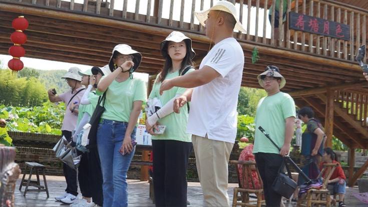 7月27日上午,调研团成员来到合兴村,探访“两花经济”如何带领合兴村民迈向绿色小康。在何声山主任的带领下,团队成员参观了荷花园和毛竹林。调研团成员了解到,合兴村“两花经济”现在是新杭镇发展生态旅游的一张重要名片。在过去,合兴村有三千多人,大多数主要从事石材加工,虽然工资收入比较可观,每天有500块,但是环境污染以及对村民生活的影响都比较大。于是为了响应国家可持续发展的政策,政府在2018年关停了石材加工厂。开始摸索新的发展道路。合兴借鉴了南京高淳荷花旅游模式,于是组织村民种植观赏花以发展旅游经济。