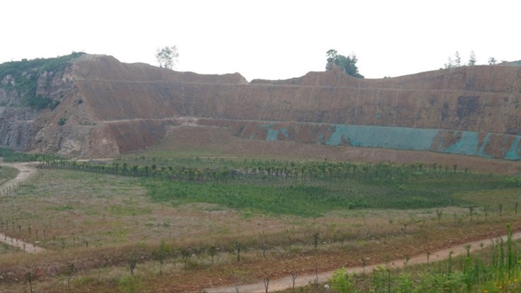 眼前调研团成员所看到的正是处于整治中的矿山。据徐主任介绍,目前矿山采取的矿山修复方法首先是边坡治理,边坡治理主要工作就是要稳定边坡,该过程的任务是清除危石、降坡削坡,将未形成台阶的悬崖尽量构成水平台阶,把边坡的坡度降到安全角度以下,以消除崩塌隐患。其次是对已经处理的边坡进行复绿,使其进一步保持稳定。通过异地取土措施,将土壤覆盖在矿山受损严重的部位,在土壤上种植植物,通过植物的作用,对受损土壤进行修复。