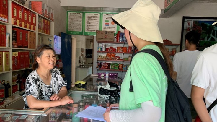 图为团队成员向村民了解箭穿村数十年来生活环境的变化