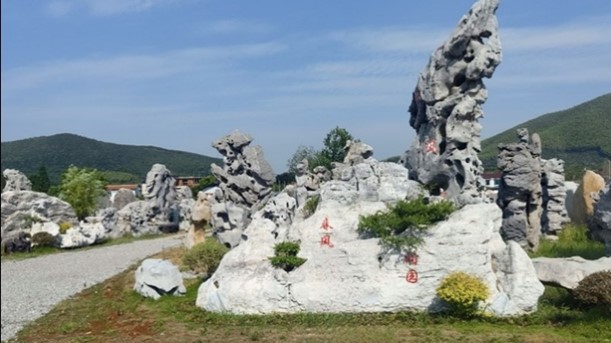 洪山村有丰富的矿产及太湖石资源及市场。调研团成员来到洪山村石场,令人印象深刻的就是马路两边成排的景观石。与民众交流得知,这些景观石都是矿山开采出来的,经雕刻加工后,放在石场待出售。