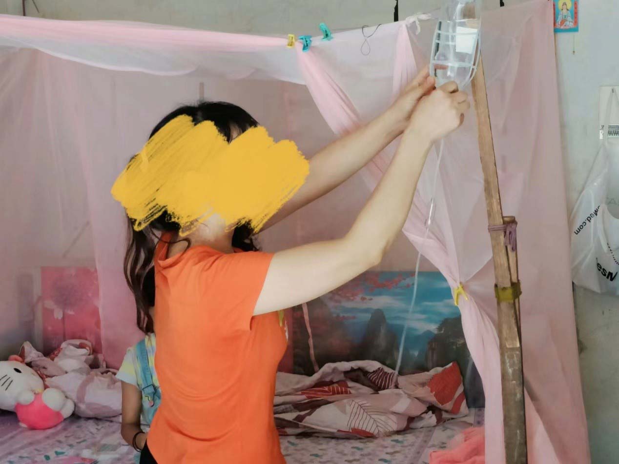 穿过一条条小巷,我们来到小桦家里,小桦妈妈热情地领我们进门,一进门就看到小桦在床上输液,但还是害羞地和我们打招呼。