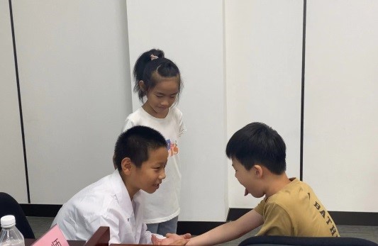 为带领小朋友们探寻中医文化里“望、闻、问、切”的奥秘,队员们将情景剧搬进了小课堂。正式活动前,队员们提前挑选了志愿者小朋友,来饰演课堂小情景剧中医生、医生助理以及病患等角色。在小朋友们热情积极的配合下,这一环节顺利地进行。