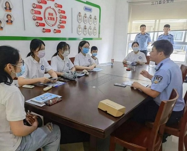 首日,实践服务团走进台州市三门县海游派出所,向反诈达人林警官请教了当下常见的各类诈骗手段,并以真实案件为辅,进一步深入了解当下的诈骗形势。