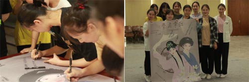 实践的最后,我们再次走进江苏省昆剧院,带去了本次实践的部分成果作品,向昆剧院的老师和学习者展示我们助力昆曲文化传承的决心和信心,并邀请他们在团队亲手绘制的昆曲宣传画幅上签名留言,同时录制了部分昆曲表演者、学习者对于未来昆曲艺术进一步发展的美好愿景与祝福。