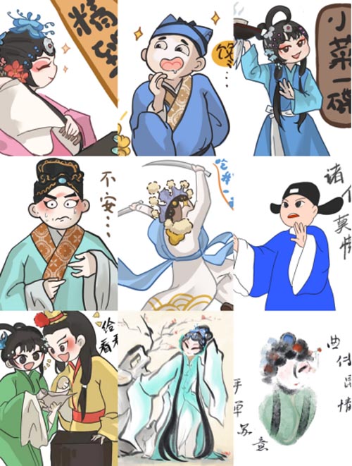 团队的实践成果将以纪录片、风华录、纪念册及文创表情包等形式向大众呈现,其中,微信表情包为团队成员亲手绘制,最具巧思和匠心,进一步体现了采用“非遗+文创”“非遗+互联网”等方式向青年人展现诸如昆曲、评弹这类传统艺术形式的魅力的实践初衷。目前,该表情包已投入使用且反响较好。