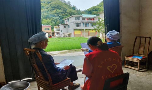 同时,我队成员联合江口县大学生春晖志愿服务队到铜仁市江口县骆象村,进行入户调查。通过与孤寡老人和留守儿童谈心,并进行相关法治宣讲,帮助村民完善自身法律知识,提升法律意识,增强自身安全感,幸福感和获得感。