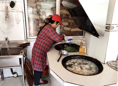 (图为卫生院家属在厨房备餐 昝鑫茂摄)
