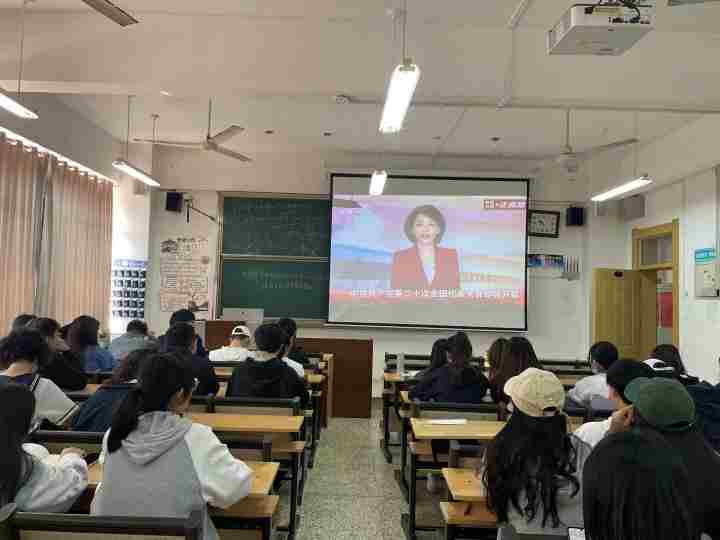 为实践队队员组织同学们线下集体观看党的二十大会议。中国青年网通讯员 李昕瑶 供图