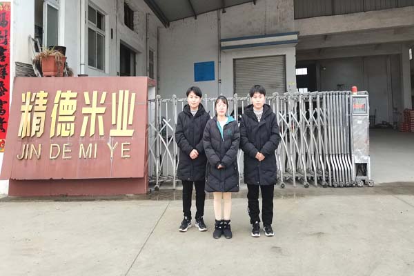 精德米业有限公司自成立以来,不断的开拓创新,找寻出了适合自己的生产模式,并带动了当地的发展。1月10日,团队成员开始前往该公司进行调研。首先,团队成员在该公司负责人的带领下观摩了整个稻米生产加工流程。从稻谷的脱壳加工,到一粒粒精细的大米装袋码放,整个过程科技的作用不可或缺。在团队成员的邀请下,精德米业有限公司的员工向团队成员详细的介绍了整个稻米产业链的模式,包括初期如何选种施肥、中期如何收获储存加工以及后期如何出售等,还带着成员参观了大米种植基地。团队成员也在工作人员的指导帮助下,亲身体验了一下整个生产加工过程。