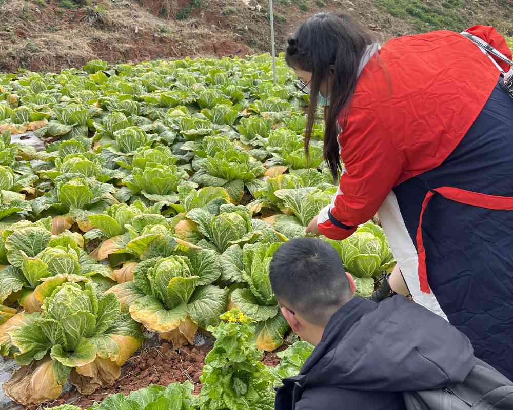 图为逐梦小队成员观看优质蔬菜。陈大珊 供图