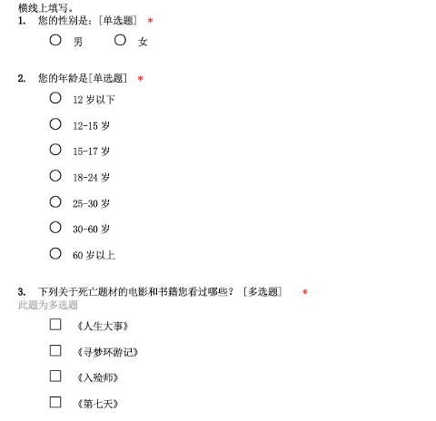 首先,团队进行了线上问卷调研,该线上调查问卷自2022年12月20日发布,2023年2月5日截止,历时47天,共收集到225份有效结果。线上问卷共分为三大部分,分别是:受访人基本信息、受访人对死亡的看法以及受访者认为死亡教育在社会的普及度。
