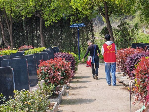 纷繁花簇旧坟头,岁月如梭静候愁;思念永存亲人恩,文明祭扫树新风。为倡导文明环保的祭扫形式,表达对先人的缅怀和敬仰,减少祭扫活动对自然环境的污染,减少火灾隐患,江西财经大学义工协会助童部同江西省南昌市殡仪服务中心展开合作,并于4月2日前往瀛上墓区开展“清明祭扫”活动。