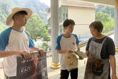 入驻山阳村后,志愿者们分为三个小队,各自有着不同的任务。其中一队由老师带领,将由志愿者提前创作好的三下乡主题扇子送给当地村委,并邀请他们一同参加创作;二队分为四个小组,深入山阳村对“扇送清凉”活动以及后续的支教、调研等一系列活动进行宣传,并且向当地的村民发出扇面创作的邀请;三队负责在村民服务中心开展摆点活动,配合当地村民、引导小朋友通过涂鸦、写字、画画等方式一起放飞思想,创作扇面。