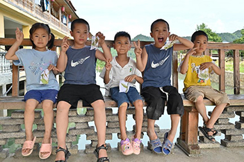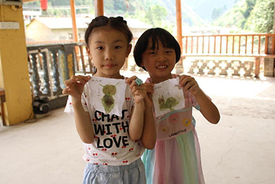 小朋友们与自己的拓染作品合影。邓茗柯 摄