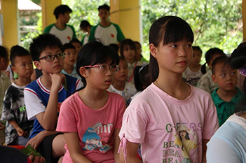 小朋友们在认真听志愿者讲解拓染历史。秦金穗 摄