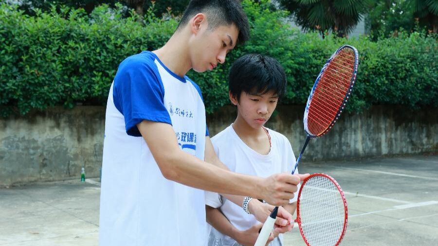 图 羽毛球课堂上老师指导学生如何握拍 华体会体育2串1