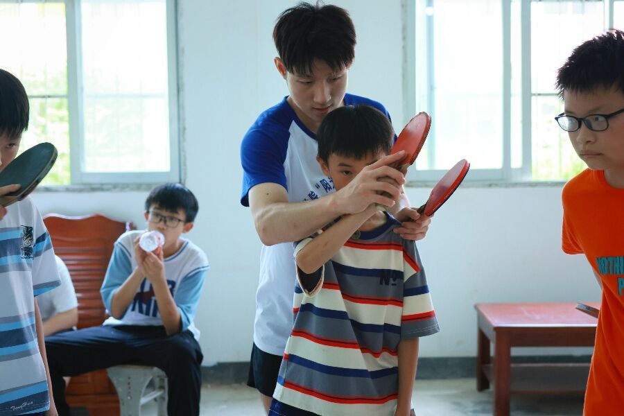 图 乒乓球课上老师纠正学生错误姿势 华体会体育2串1