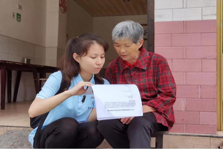 图为志愿者们在塘垭村居委会里为村民讲解问卷 夏毓晗 摄