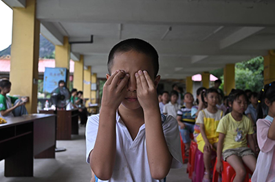 “我们要端正书写姿势,控制阅读时间,定期检查视力”,志愿者老师李志鹏向小朋友们讲述道,“平时要多注意休息,少看电视、手机,做好近视眼的预防工作。”课程最后,李志鹏带领小朋友们跟随音乐一起做眼保健操。