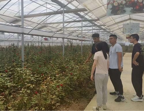 图为能力树和美乡村调研社会实践团参观玫瑰大棚。张梦园 供图