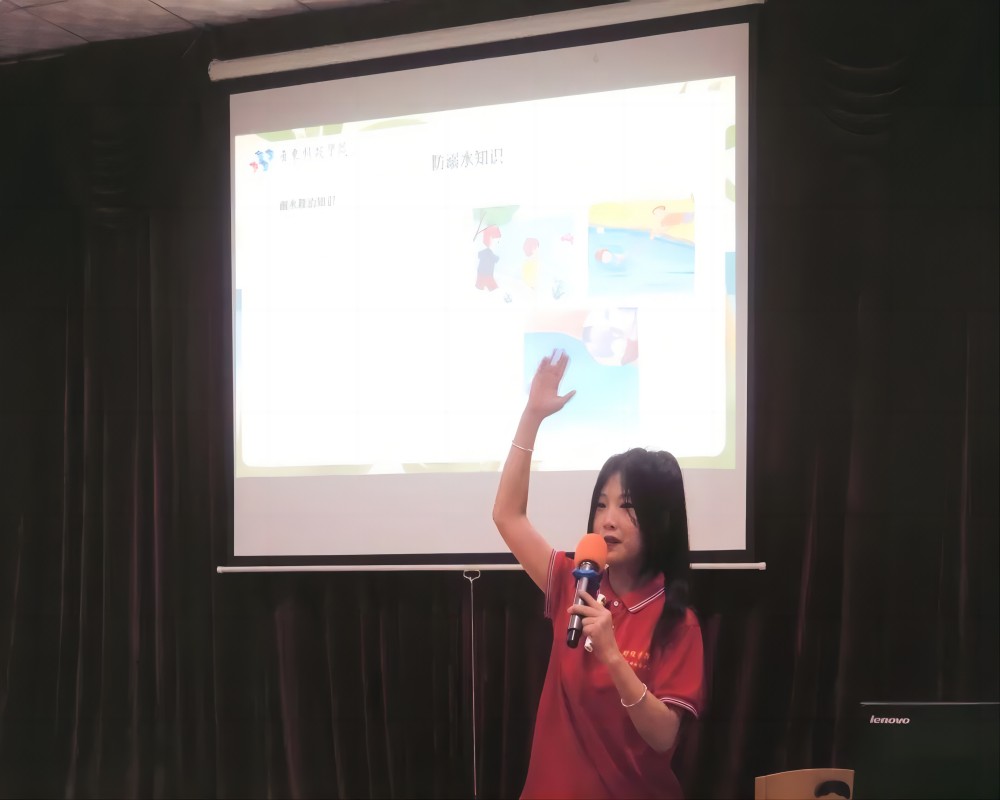 随着暑期的到来,青少年儿童溺水事故进入高发期,为切实加强未成年人防溺水安全意识,宣讲实践团成员利思琳图文并茂地科普防溺水安全知识,通过讲解真实案例、互动问答、邀请同学上台模拟溺水自救等方式,进一步强化青少年防溺水的自觉性,提高识别险情、遇险逃生的能力。