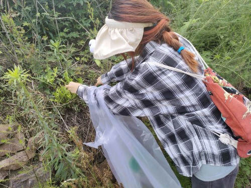 首先,团队在基地负责人陈老师的指导下,学习了标本原材料的采集方法,陈老师指出,在采集过程中,应尽量选择具有完备的器官结构、叶片完整的独立植株,对于主要为根部入药的中草药材要尤其注意保证根系的完整性。按照采集的方法和标准,团队成员积极开展实践,体验原材料的采集过程。