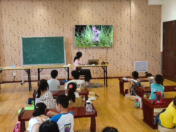 接下来孙明慧老师给孩子们放了几个关于小动物的视频,给孩子们科普了小猫、兔子以及海豚等等,视频里有小孩子给各种小动物来配音,生动形象地把各种小动物的特点和生活习性讲解了出来,让孩子们看得身临其境、津津乐道,娱乐的同时也学到了很多关于小动物的科学知识。