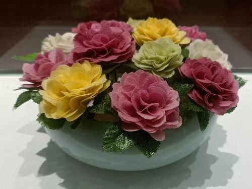 图 4 图为展厅内展品——使用煎饼制作的花卉。
