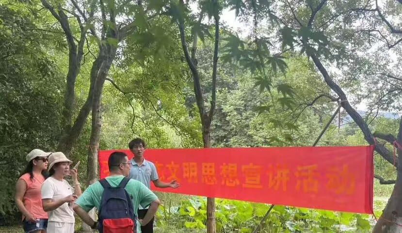 为了积极宣传习近平生态文明思想,守护好赖以生存的河流,呼吁更多人投入到保护河流生态环境的行动中来,实践团队通过开展生态文明宣讲向游客们介绍河流与人类的关系进一步宣传了河流生态保护的重要性。