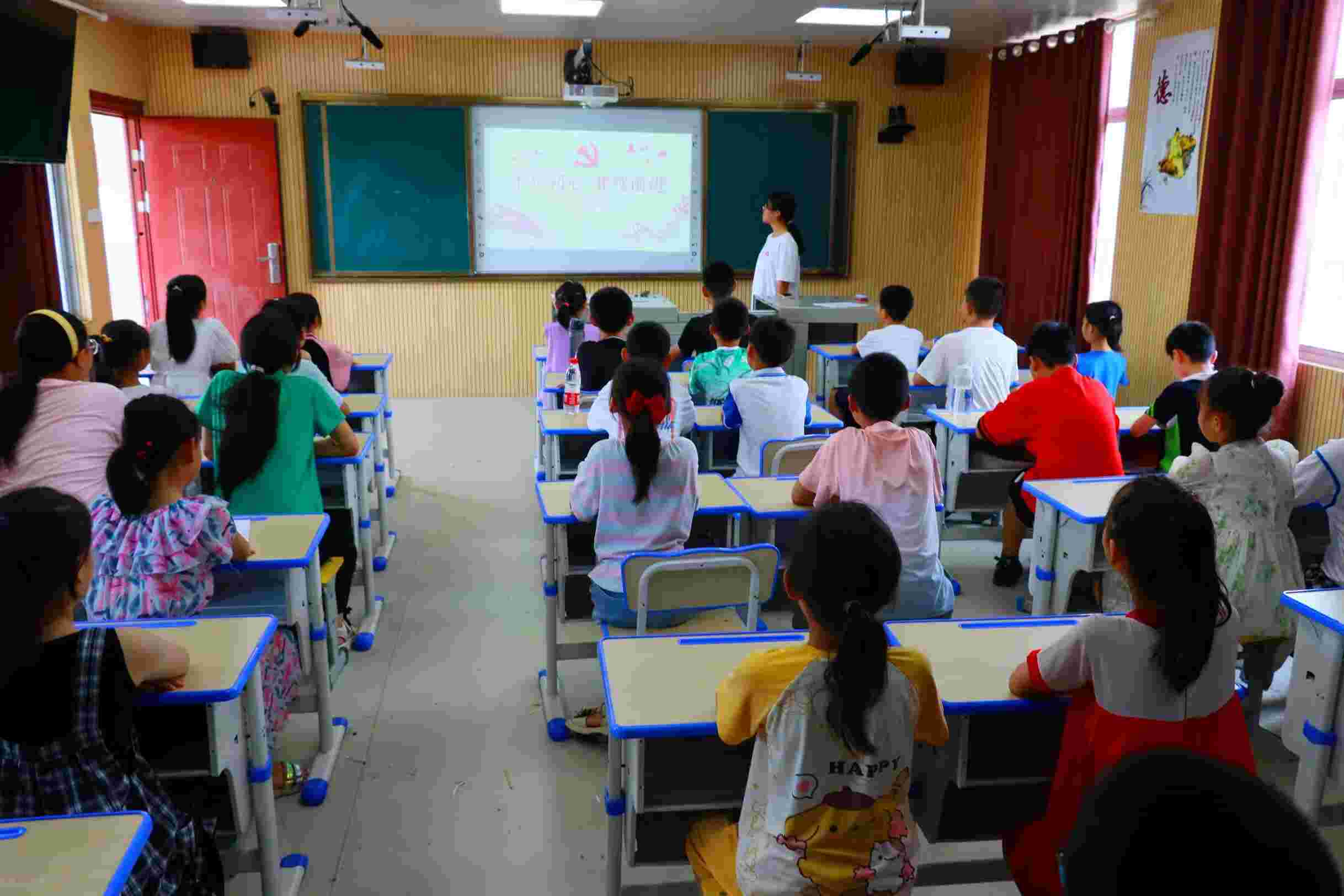 图为老师正在为孩子们讲解“井冈山精神”专题课程,孩子们皆认真聆听。