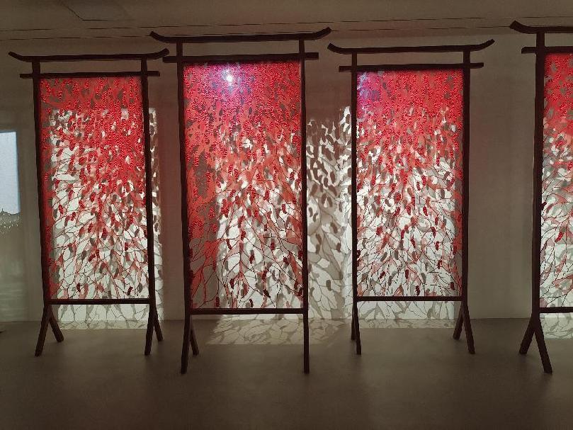 7月11日,实践小队来到台绣刺绣博物馆,欣赏了很多林霞老师的作品,其中《紫椹》、《生》、《余》等著作更是让人惊艳。